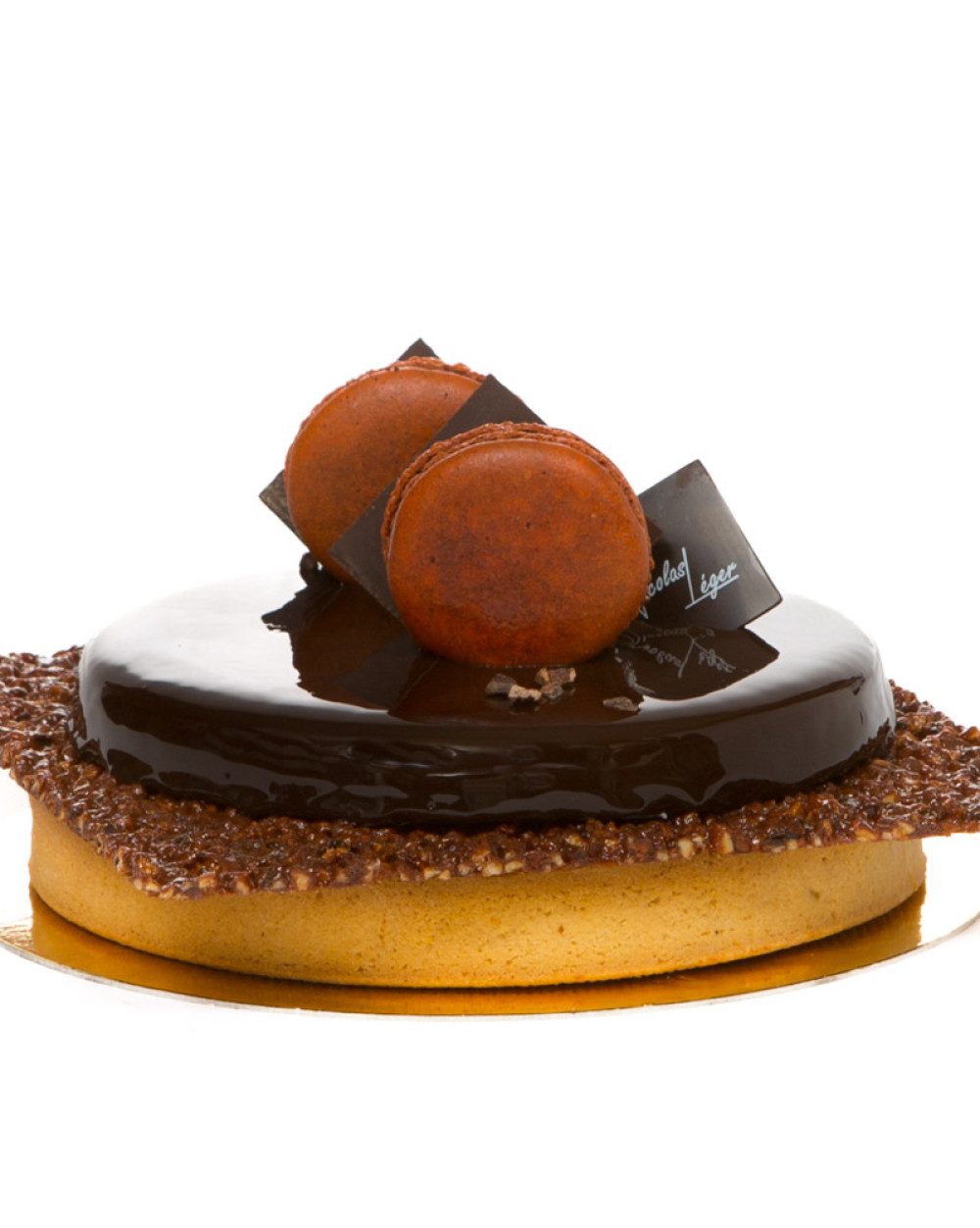 Tarte caramel beurre salé, nougatine chocolat, mousse chocolat noir